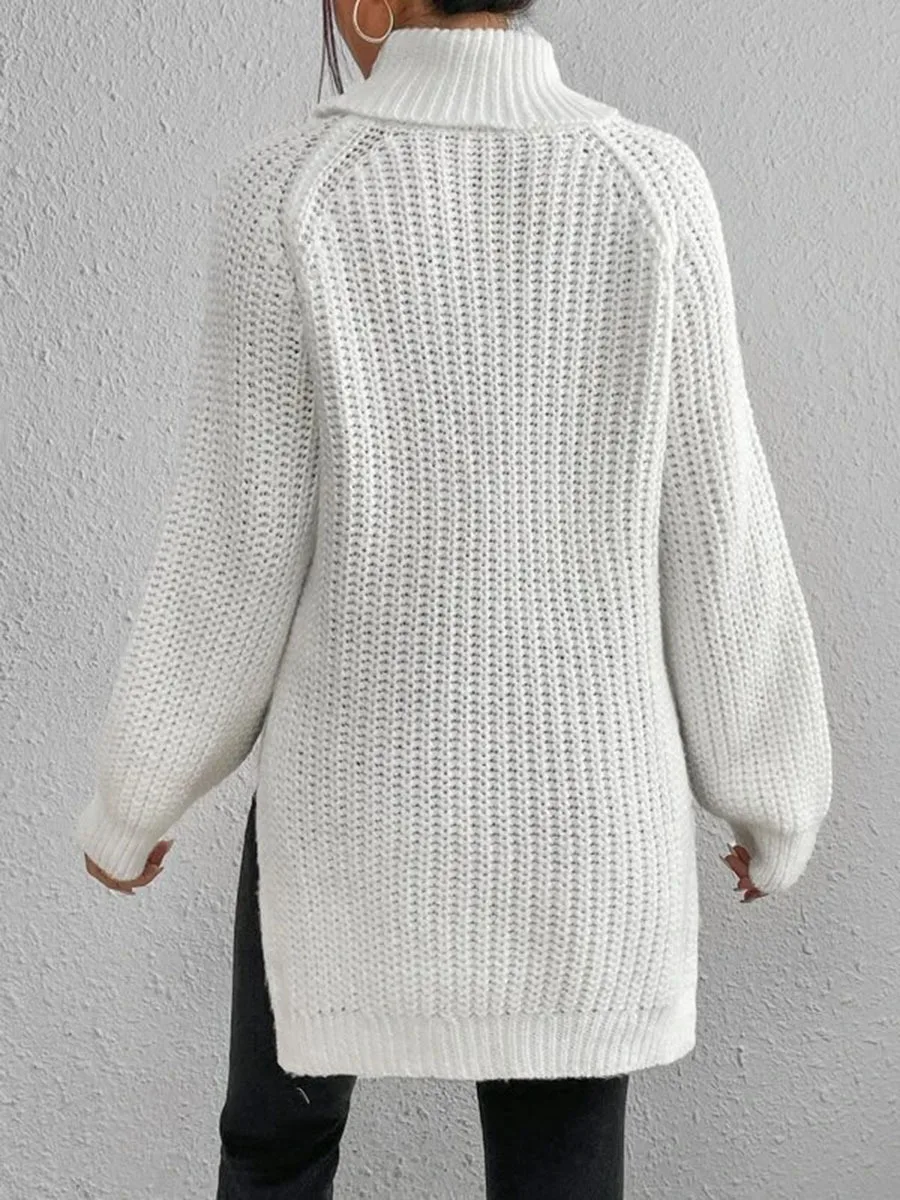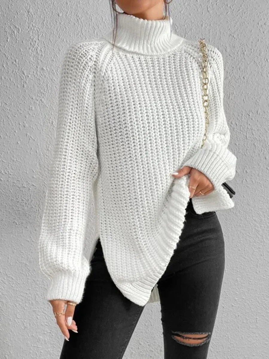 Women Winter Turtleneck Loose Sweater Elegant Drop Sleeve Side Split Pullover Vintage Harajuku Chic Jumpers Oversized knit Tops